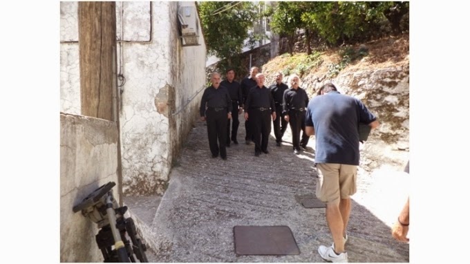 στα οκτώ χωριά του βουνού «Κέντρους», άρχισαν τα γυρίσματα του δεύτερου ντοκιμαντέρ των δημοσιογράφων Γιάννη Κανελλάκη και Μανόλη Παντινάκη. Οι λήψεις έγιναν σε αυτή τη φάση στα μαρτυρικά χωριά Άνω Μέρος και Γερακάρι, εκεί που οι ναζί με τον πιο έντονο τρόπο εξεδήλωσαν το μένος τους στους πληθυσμούς που αντιστάθηκαν, και δέχτηκαν τα σκληρά αντίποινα για την απαγωγή του Γερμανού στρατηγού Καρλ Κράιπε. Και οι τέσσερις ώρες λήψεων, κάτω από τον καυτό ήλιο του Αυγούστου και σε θερμοκρασίες που ξεπερνούσαν τους 40 βαθμούς, αφιερώθηκαν στο τραγούδι τριών ριζίτικων που αναφέρονταν στις πρωτοφανείς θηριωδίες των Γερμανών στους αιματοβαμμένους οικισμούς από την «Αμαριώτικη Παρέα», που συγκρότησε το 2001 στην Αθήνα ο κ. Σταύρος Φωτάκης.