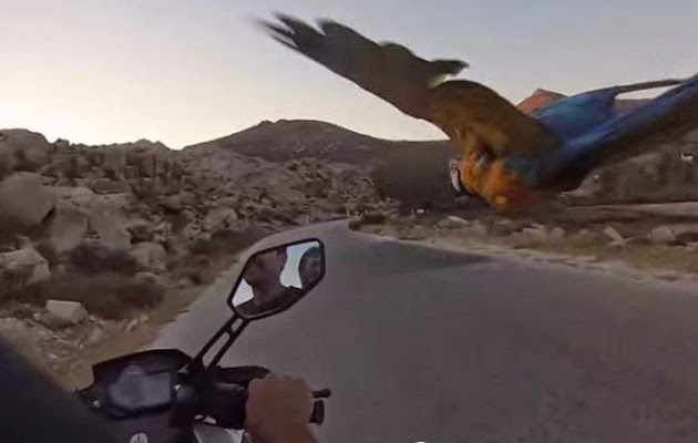 Όπως θα δείτε και στα βίντεο ο παπαγάλος τρέχει σαν άλογο κούρσας κοντά από το αφεντικό του.